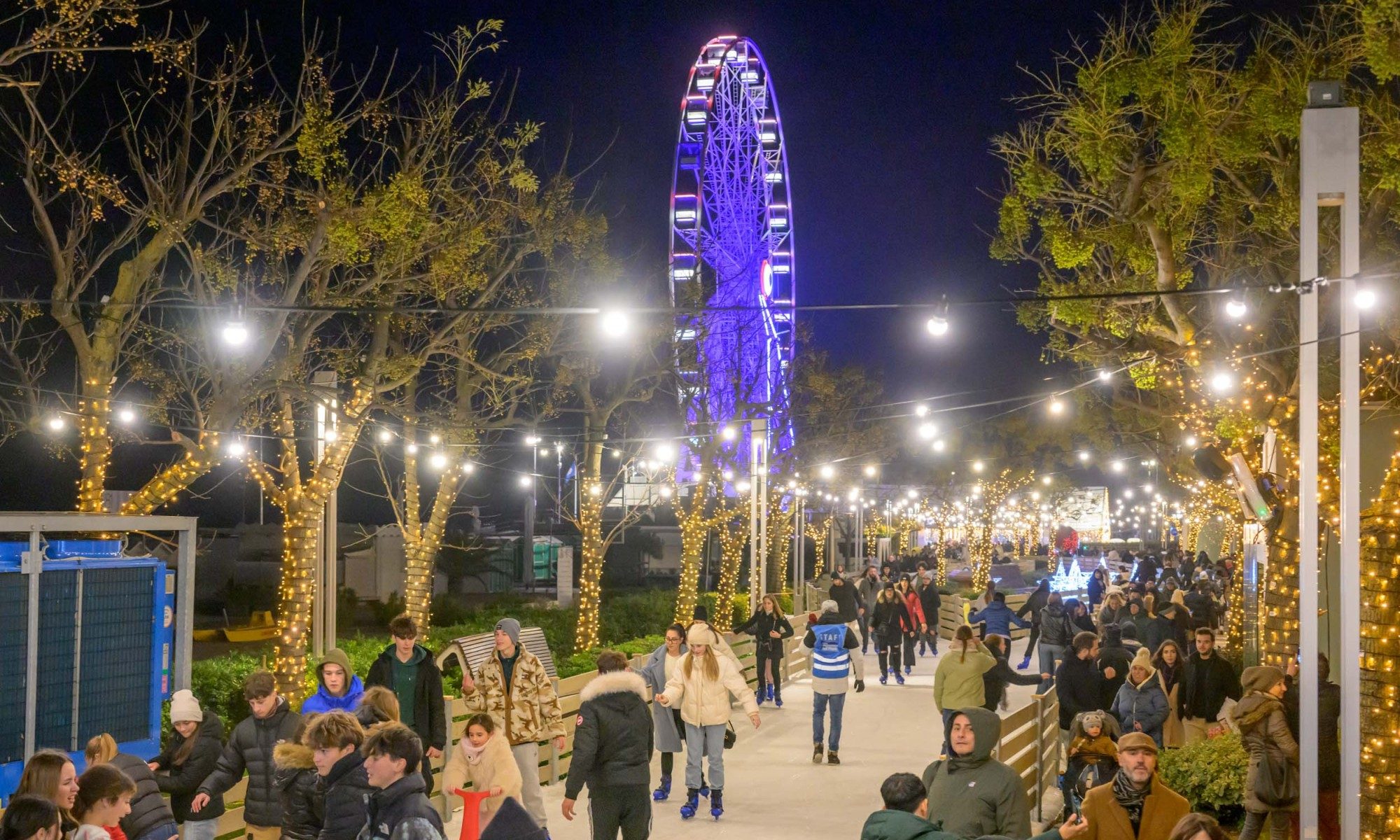 Piazzale Roma si trasformerà in una spettacolare pista di pattinaggio su ghiaccio, all’interno del Lungomare Ice Park. La pista, con i suoi 1.650 metri quadrati, è la più grande d’Italia e, insieme alla ruota panoramica, completerà la scenografia dell’intera area, creando un villaggio glaciale da fiaba.
