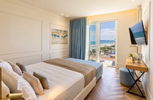 Le nostre camere e suite con vista mare, offrono arredamenti eleganti e comfort esclusivi come Wi-Fi gratuito, Sky TV, minibar, coffee station, luxury courtesy set, climatizzazione autonoma, room service e tanto altro. Dalle accoglienti camere singole alle lussuose Suite, ogni spazio è progettato per assicurare il massimo relax e un’ospitalità a 4 stelle nel cuore pulsante di Riccione. Disponiamo inoltre di camere progettate per garantire l’accesso ed il comfort a persone con disabilità