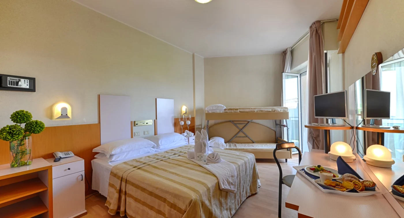La comodità è di casa all’Hotel Bel Air, ogni camera è dotata di climatizzatore autonomo e connessione wi-fi. Hai anche la possibilità di soggiornare in camere comunicanti, ampie e con bagno privato da 37 mq a 30 mq circa: la vacanza è ancora più bella quando in famiglia ognuno ha il suo spazio per vivere bene.