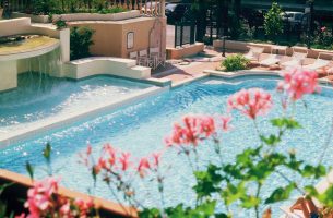 In centro a Riccione, sul porticciolo turistico, ad un passo dal mare. La più grande piscina di Riccione (23 X8 mt.) con una seconda vasca dotata di idromassaggio e cascata, area benessere con bagno turco, solarium, zona relax e cabina massaggi.
