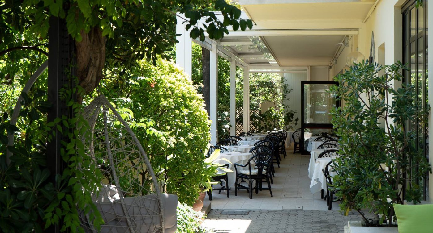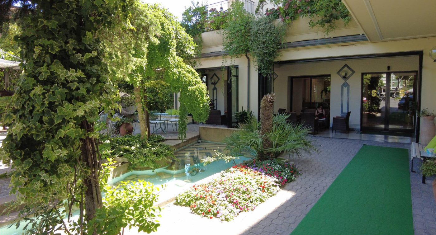 Si trova in una splendida posizione: nell’isola pedonale del vivace Viale Ceccarini ma allo stesso tempo immerso nel verde e nella quiete dei giardini, che lo separano da una belissima spiaggia di sabbia dorata distante solo 100 metri.