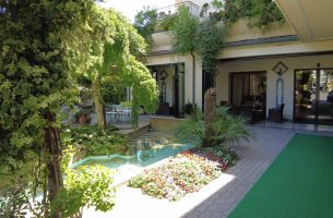 Si trova in una splendida posizione: nell’isola pedonale del vivace Viale Ceccarini ma allo stesso tempo immerso nel verde e nella quiete dei giardini, che lo separano da una belissima spiaggia di sabbia dorata distante solo 100 metri.