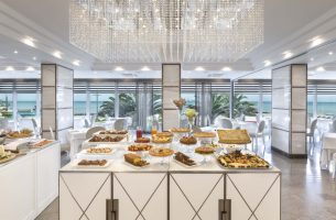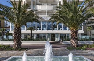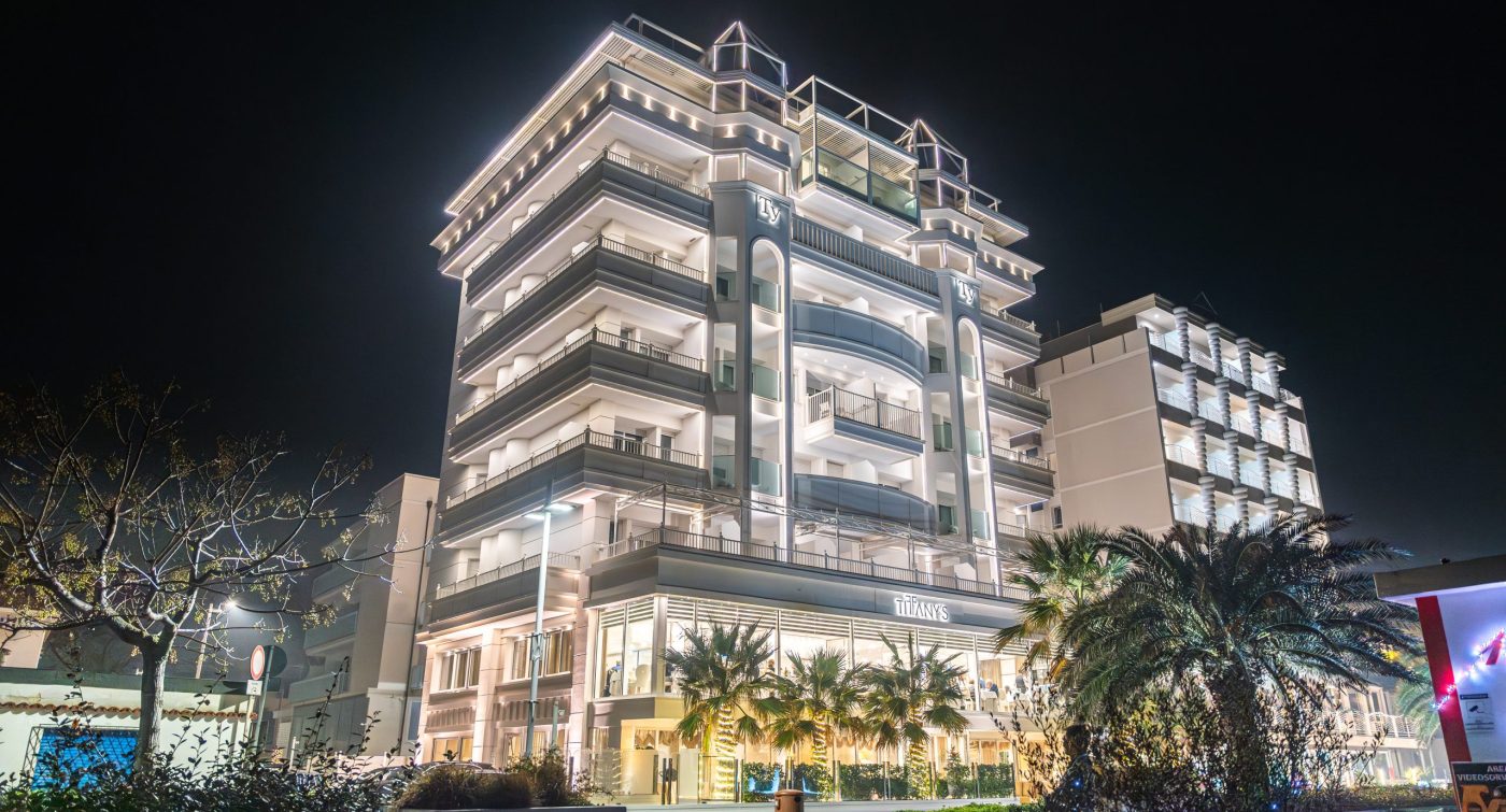 Affacciato direttamente sulla spiaggia, l’Hotel Tiffany’s 4 stelle è la scelta perfetta per vacanze di relax o soggiorni business a Riccione. Ambienti raffinati, camere eleganti e servizi top class garantiscono un’accoglienza impeccabile. Tutte le camere confortevoli e funzionali, sono dotate di Tv Led di ultima generazione con canali Sky gratuiti, Wi-Fi, cassaforte, minibar, ricco set di cortesia e balcone privato. Nel ristorante interno con vista mare panoramica potrete gustare ogni giorno piatti ricercati pensati per soddisfare anche i palati più esigenti. Completano l’offerta un garage privato videosorvegliato.